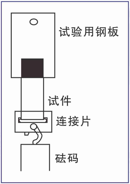 固定:將測(cè)試板掛在機(jī)器的掛鉤上,下面用連接片連接并掛上砝碼